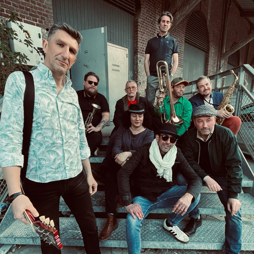 Afficher le planThe Liquidators, ce sont neuf musiciens issus de formations incontournables de la scène lilloise (Dubians, J-funk Marcel et son Orchestre). Des grooves imparables, des cuivres débridées, et la performance scénique d’Hamid, leur chanteur-showman, : ils proposent un set où se croisent reprises et adaptations originales dans l’esprit des années 60/70. Attention, ils emportent tout sur leur passage !